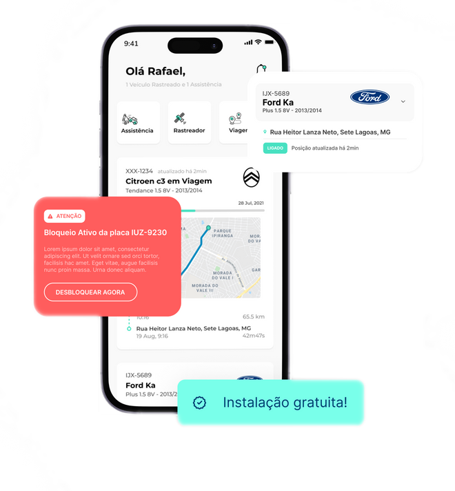 Nosso sistema te ajuda a economizar dinheiro, com alertas de manutenção, contrele de rotas. Bloqueio e desbloqueio, Alarme de ignção e monitoramento 24h.